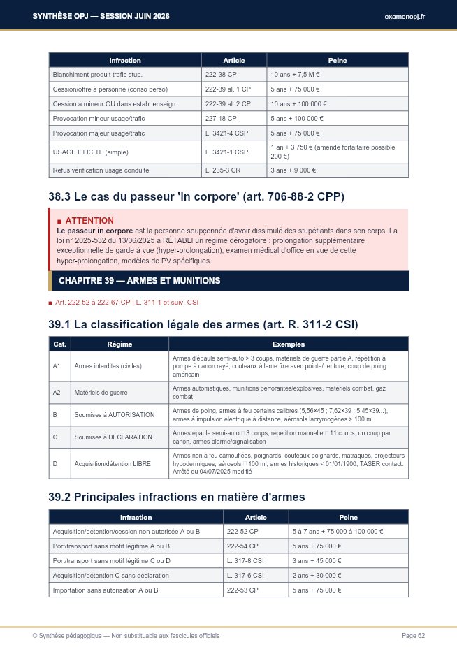 Art. 222-52 à 222-67 CP | L. 311-1 et suiv. CSI