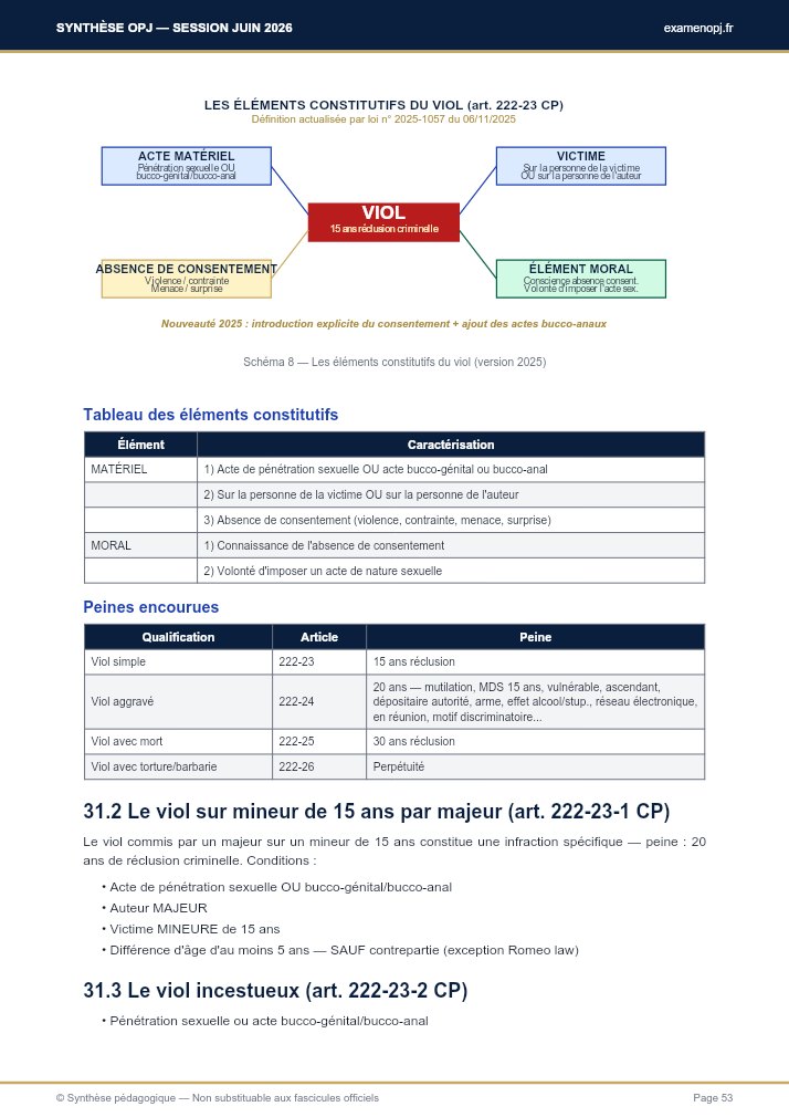 Réformes 2025 (consentement, actes bucco-anaux, professionnels de santé en circonstances aggravantes) — lire de concert les textes et Commentaires législatifs en vigueur sur la période d'examen.